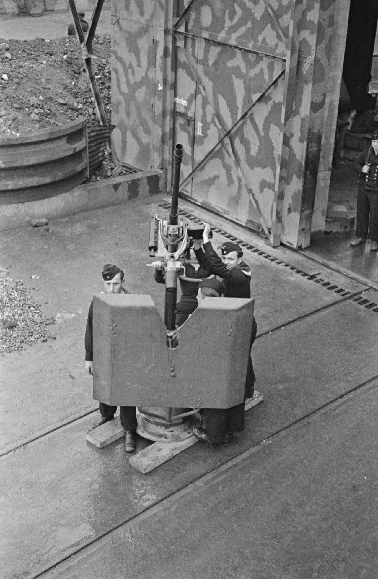 Présentation d'un nouveau bouclier protégeant les servants d'un canon de 2 cm pour les sous-marins allemands : U-Boot Flakgeschütz 2 cm.