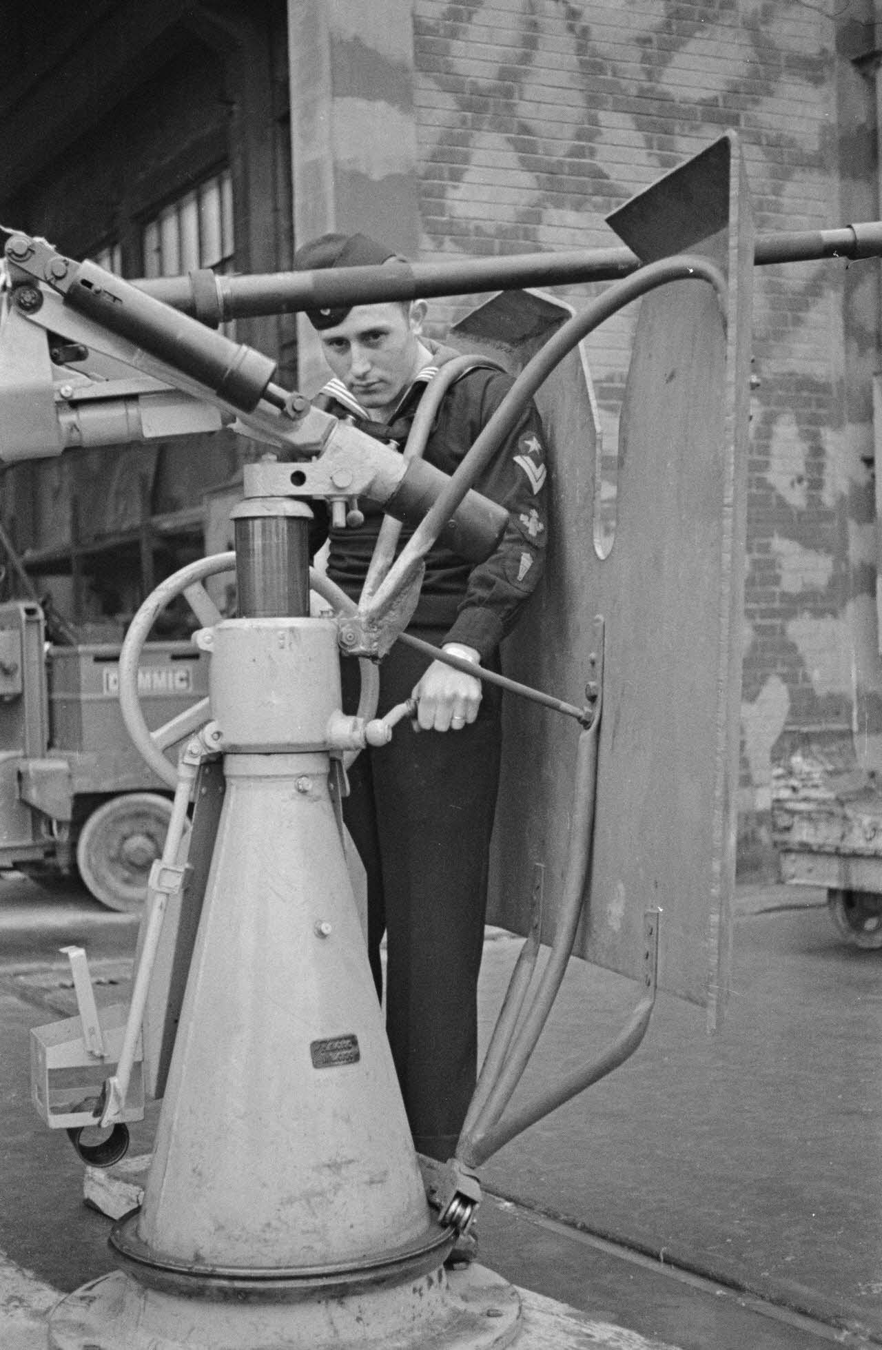 Présentation d'un nouveau bouclier protégeant les servants d'un canon de 2 cm pour les sous-marins allemands : U-Boot Flakgeschütz 2 cm.