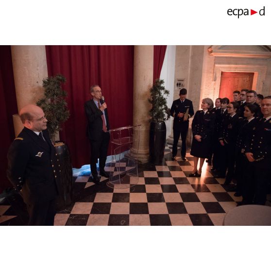 Allocution de monsieur Eric Dyèvre, président de l'AEN (ancien de l'école navale), en présence de l'amiral Christophe Prazuck, CEMM (chef d'état-major de la Marine), lors de la réunion du séminaire des grandes écoles militaires.