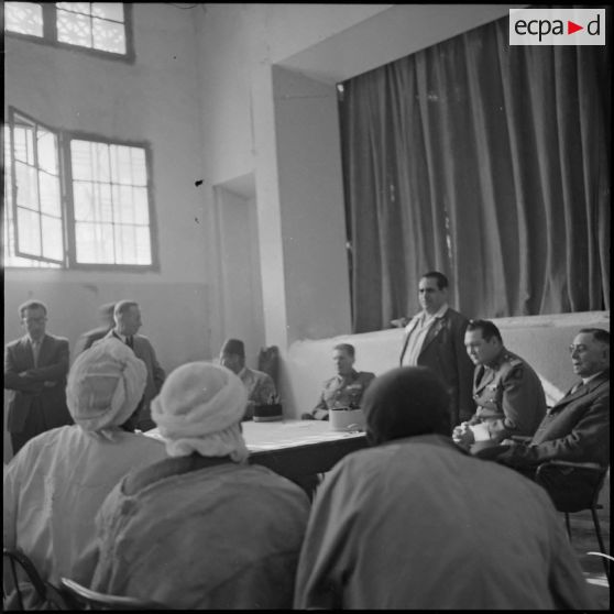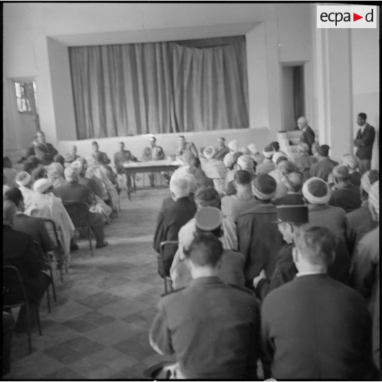 Cérémonie à la salle des fêtes de Dellys à l'occasion des adieux du général Gouraud à la 27e division d'infanterie alpine (DIA).