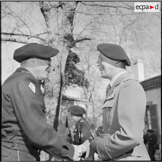 Adieux du général Gouraud de la 27e Division d'infanterie alpine (DIA) en compagnie de son successeur le général de brigade Fonteneau.