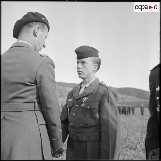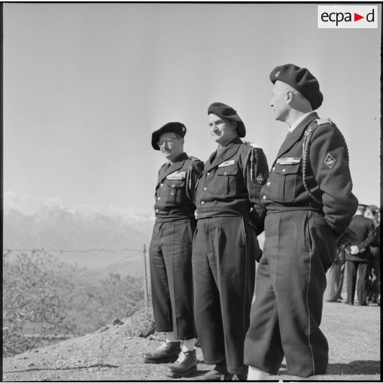 Des officiers de la 27e division d'infanterie alpine (DIA) observant le djebel Djurdjura.