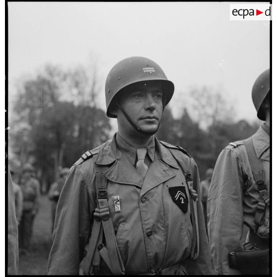 Le colonel Demetz lors d'une prise d'armes le 5 novembre 1944.