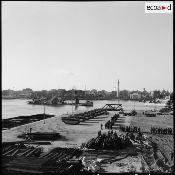- les dernières troupes françaises s'apprêtent à embarquer sur des LST (landing ship tank) à Port-Fouad,