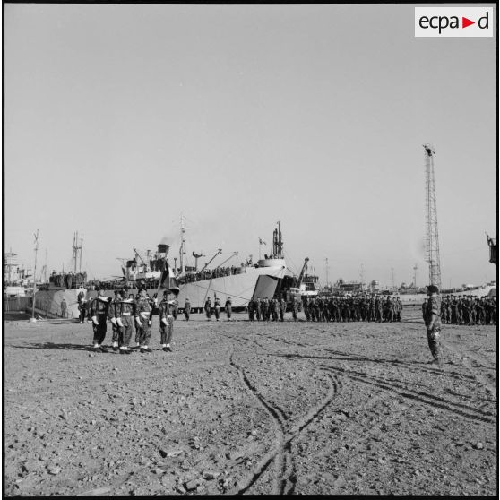 Prise d'armes sur le quai d'embarquement à Port-Fouad.
