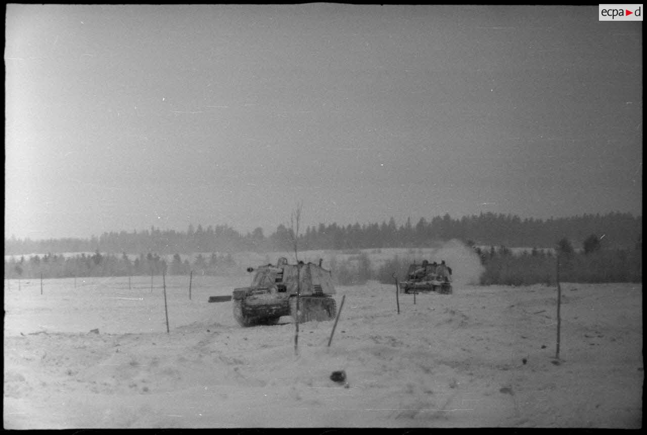 Progression de deux Nashorn appartenant au schwere Panzerjäger Abteilung 519.