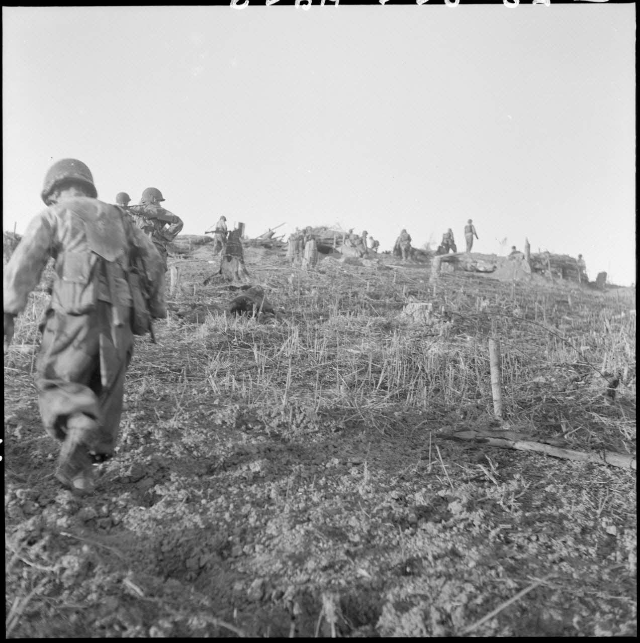 Bataille de Na San. Le 1er décembre au matin, une contre-attaque du 3e BPC (bataillon de parachutistes coloniaux) permet de récupérer le PA 24 (point d'appui) du camp retranché de Na San, enlevé par le Viêt-Minh dans la nuit du 30 novembre au 1er décembre 1952. Les parachutistes du 3e BPC mènent un assaut puissant vers la PA 24, avec l'appui de l'aviation et de l'artillerie; on soigne, on opère et on transfuse les blessés; des tirailleurs découpent de la viande pour le repas; les parachutistes recensent les blessés et les prisonniers Viêt-minh après le combat.