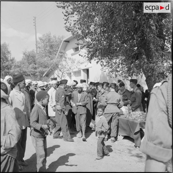 Au cours du méchoui, le général Malagutti s'entretien avec un soldat.