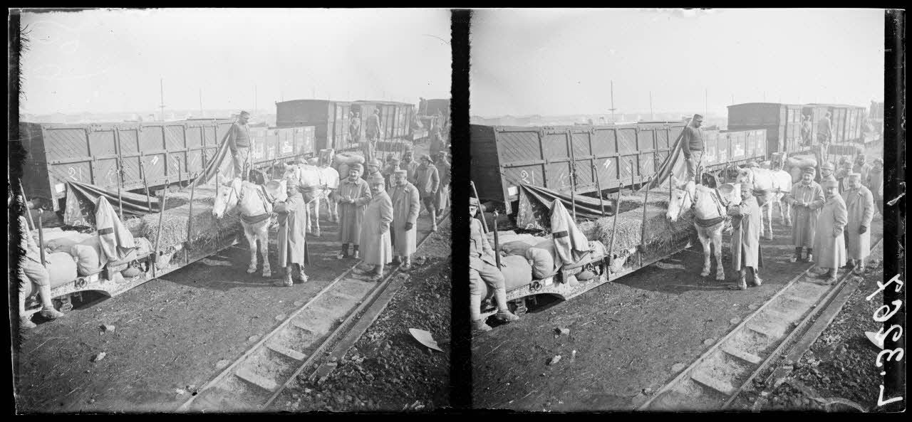 - à Prouilly, différentes vues de la gare de ravitaillement ferroviaire en activité (trains, voitures hippomobiles et automobiles, chargement de vivre, SPA 66 L 3256/3261/3267), un groupe de soldats se sert du vin, des photographies de groupe au cantonnement ;