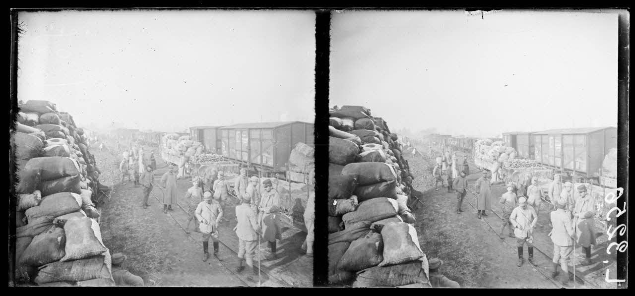 Prouilly (Marne). Gare de ravitaillement. Distribution des subsistances.