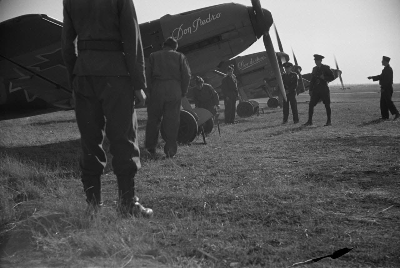 Officiers roumains du Grupul 9 lors d'un départ en mission des avions de chasse Bf-109.