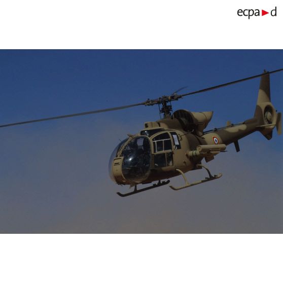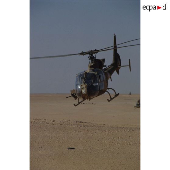 Hélicoptère de combat Gazelle HOT du 5e RHC en patrouille de reconnaissance dans la région de CRK (camp du roi Khaled).