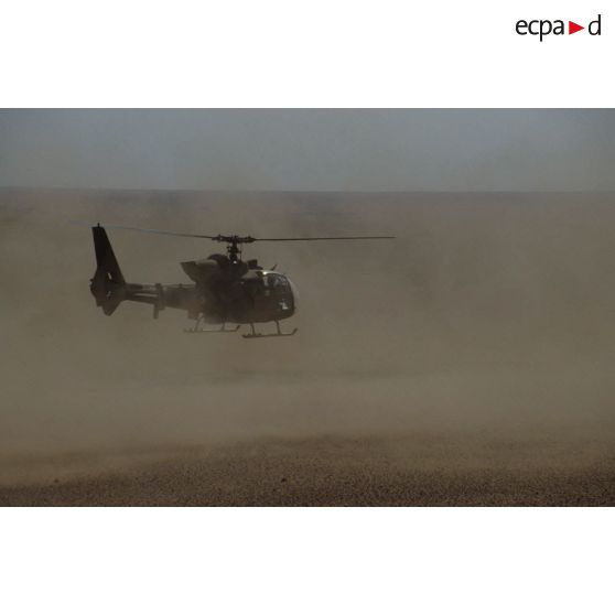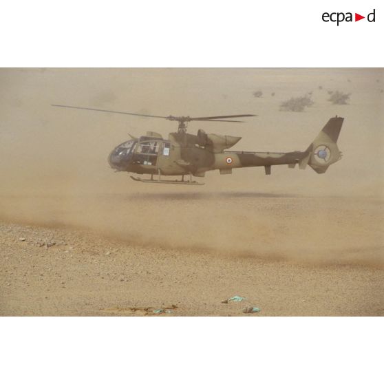 Atterrissage d'un hélicoptère de combat Gazelle HOT du 5e RHC dans la région de CRK (camp du roi Khaled).