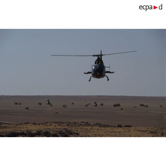Patrouille de reconnaissance d'hélicoptères de combat Gazelle HOT du 5e RHC dans la région de CRK (camp du roi Khaled).