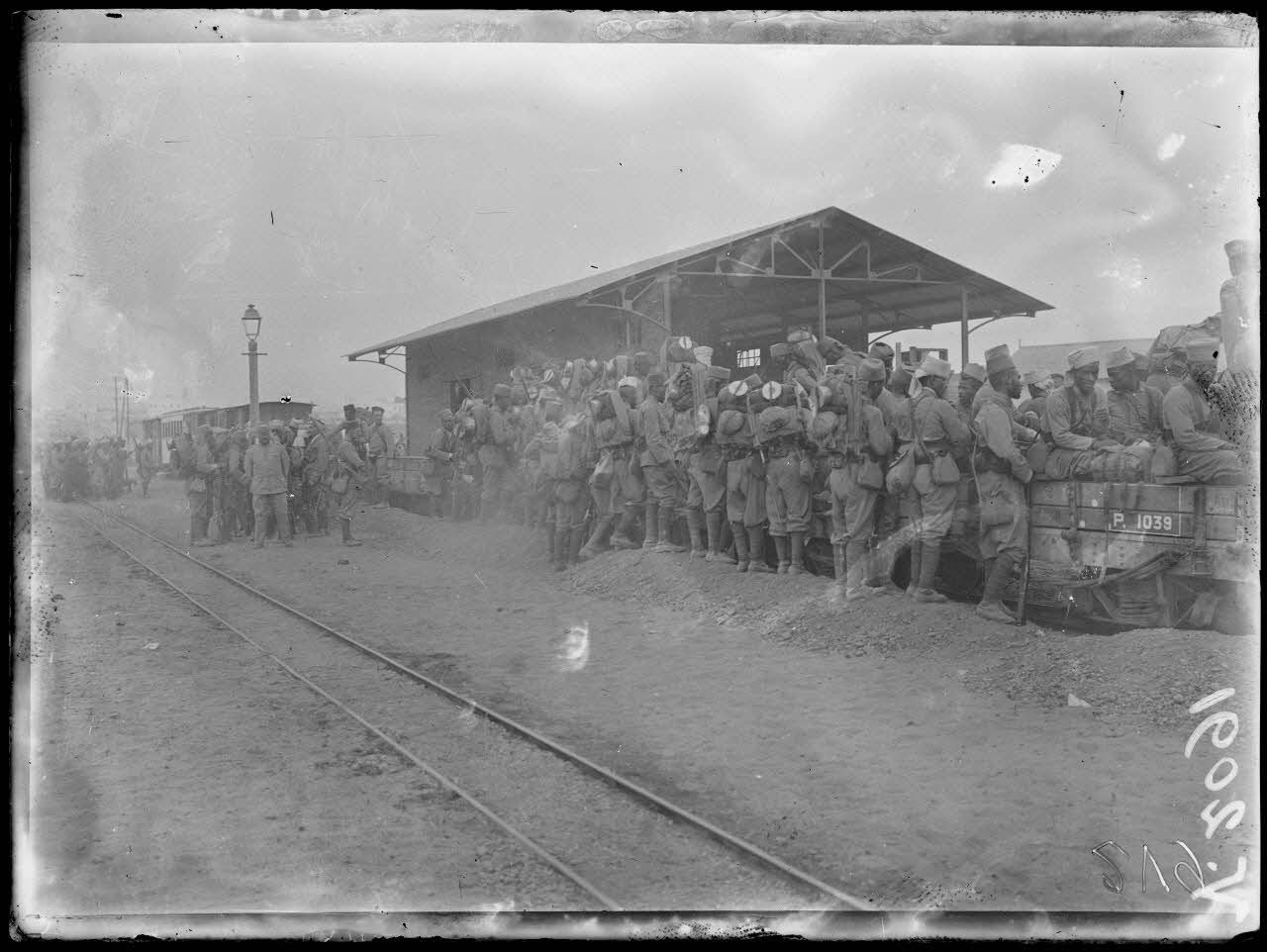 Rabat. Embarquement à la gare de Rabat-Salé des troupes marocaines destinées au front français.