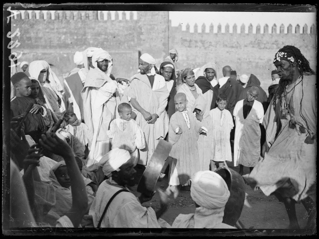 Rabat. Fête de l'Achoura, premier de l'An arabe. Groupe de mauresques et d'enfants.
