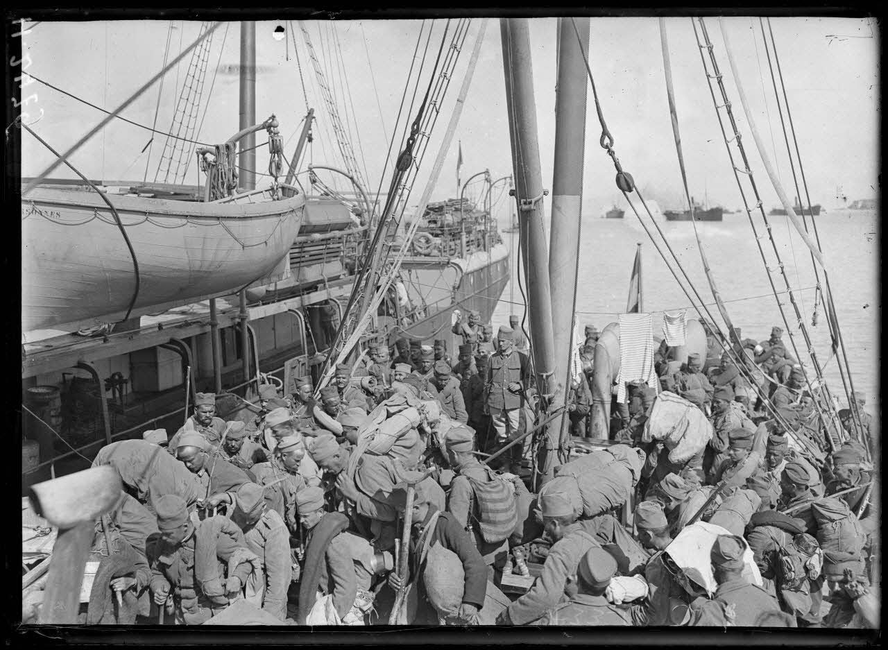 Embarquement des troupes serbes à Govino et Moraitka, avril 1916.