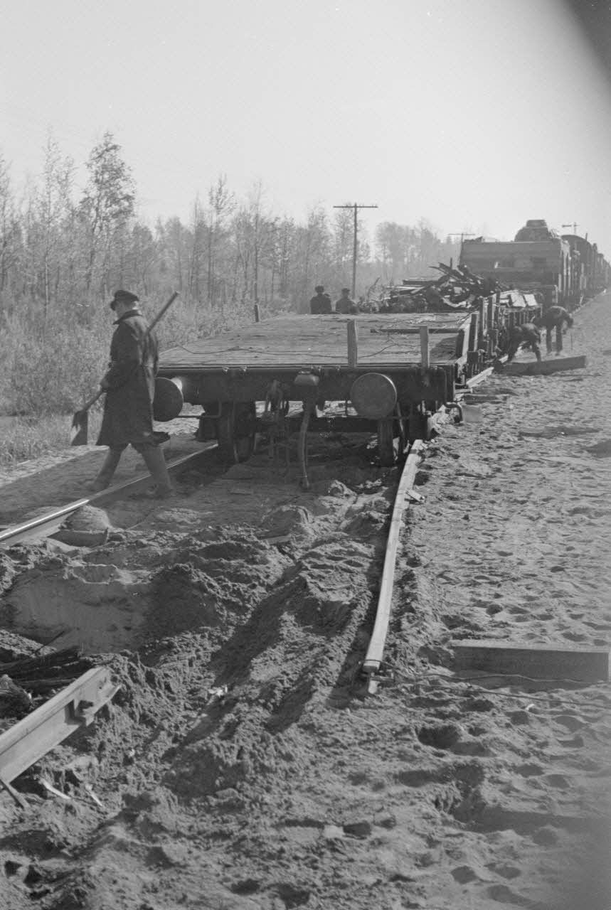 Rails sabotés par la résistance locale non loin de la gare de Chmelewo.