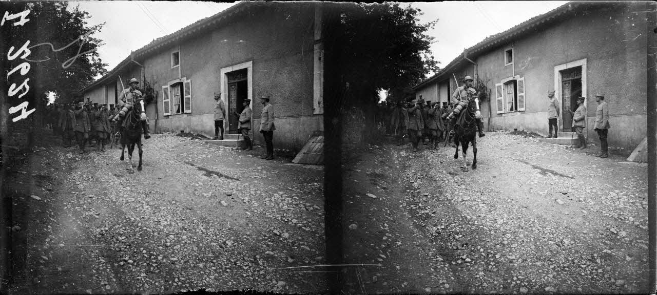 - à Esnes-en-Argonne, les ruines du village (SPA 56 L 2611), des prisonniers allemands, encadrés de soldats français au poste de secours (SPA 56 L 2603/2604), un bombardement pendant l'attaque vu du village en ruines (nuage de poussières, SPA 56 L 2618), des troupes de réserve en attente devant Esnes (SPA 56 L 2616/2645/2646) ;