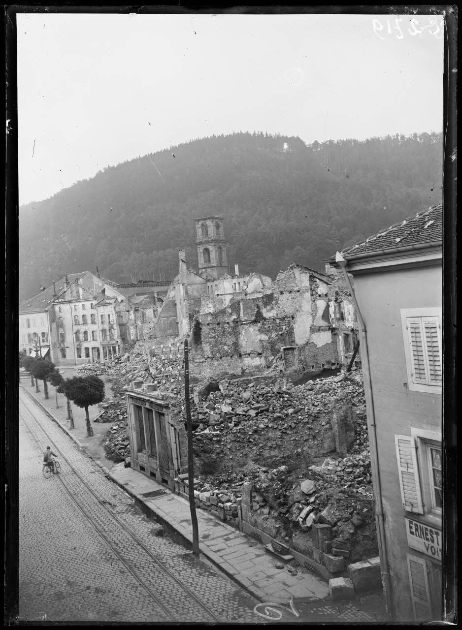 Note : combats et occupation allemande de la ville du 24 août-12 septembre dix-neuf dans la ville. Raon-l'Étape ne reste pas longtemps sous occupation allemande. À partir du 6 septembre dix-neuf, l'ennemi se replie, le 11, le général Dubail commandant la première armée, ordonne la contre-offensive. Le 12 septembre, les Français font de nouveau leur entrée dans Raon-l'Étape. L'occupation allemande de la ville n'a duré que dix-neuf jours, mais les destructions volontaires laissent la ville aux trois quarts détruite. La nouvelle ligne de front se stabilise à une douzaine de kilomètres, parallèlement à la rive droite de la Meurthe.