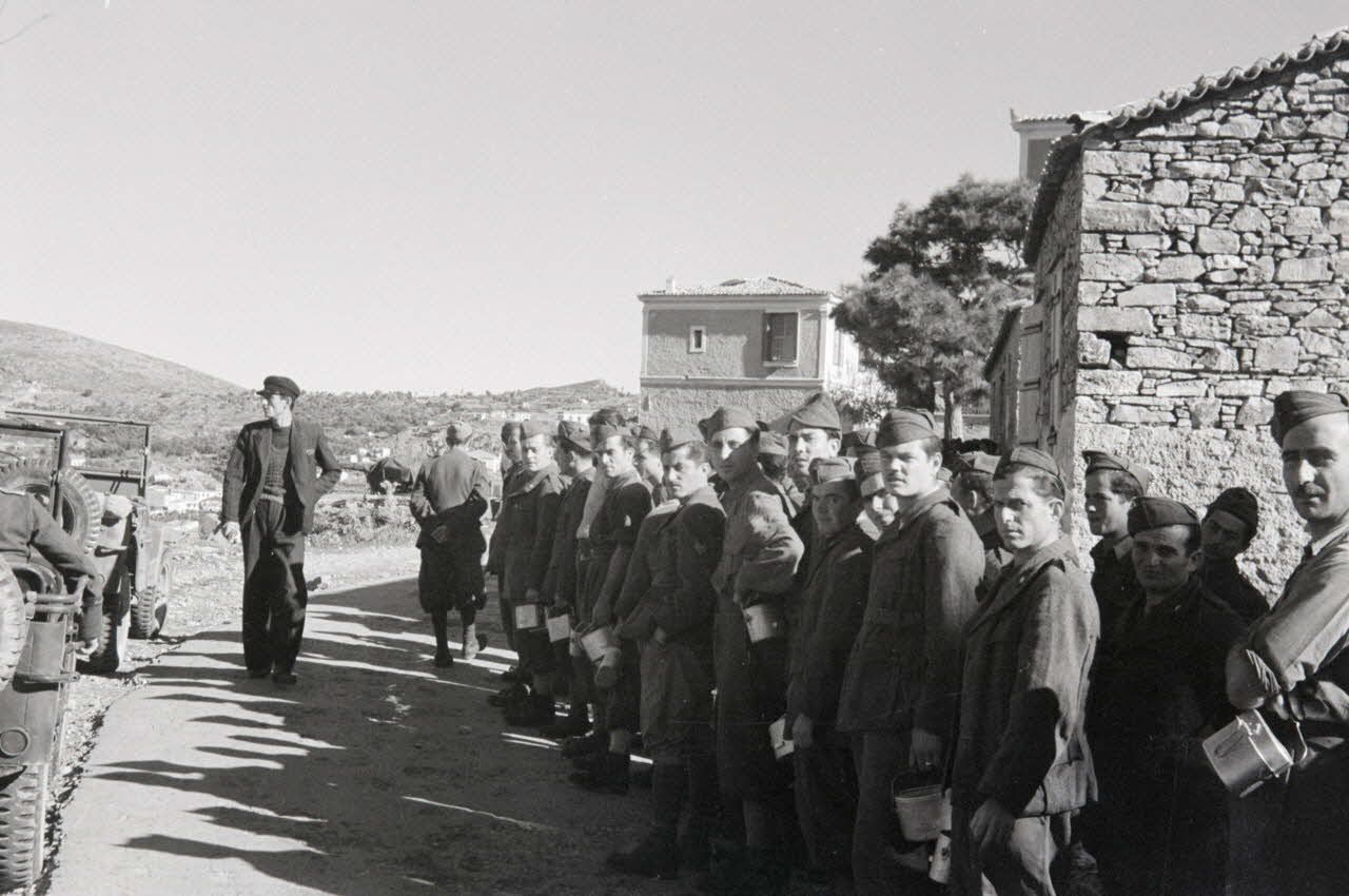 Rassemblement de prisonniers italiens sur l'île de Samos (Grèce).