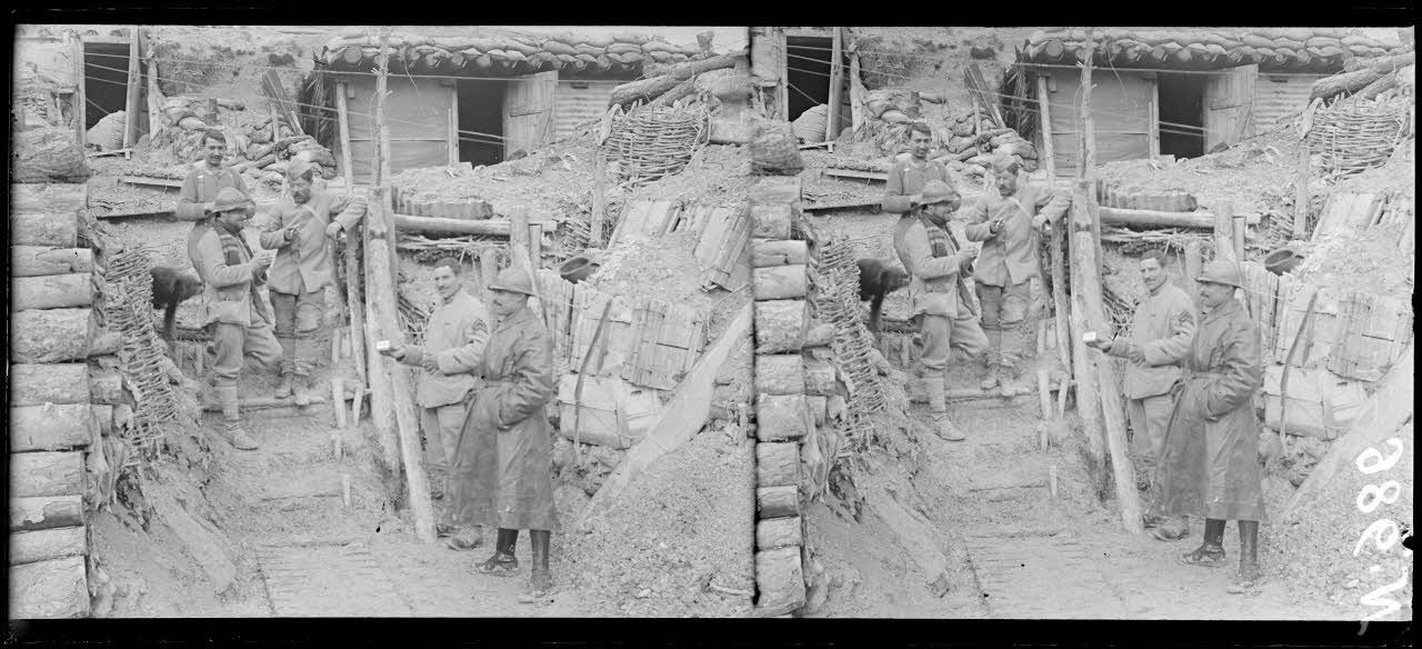 - Dans le secteur de Souain, au PC de l'Etoile, dans le bois de la Chaise, des abris souterrains sont occupés par les soldats. Un guetteur surveille les lignes ennemies.