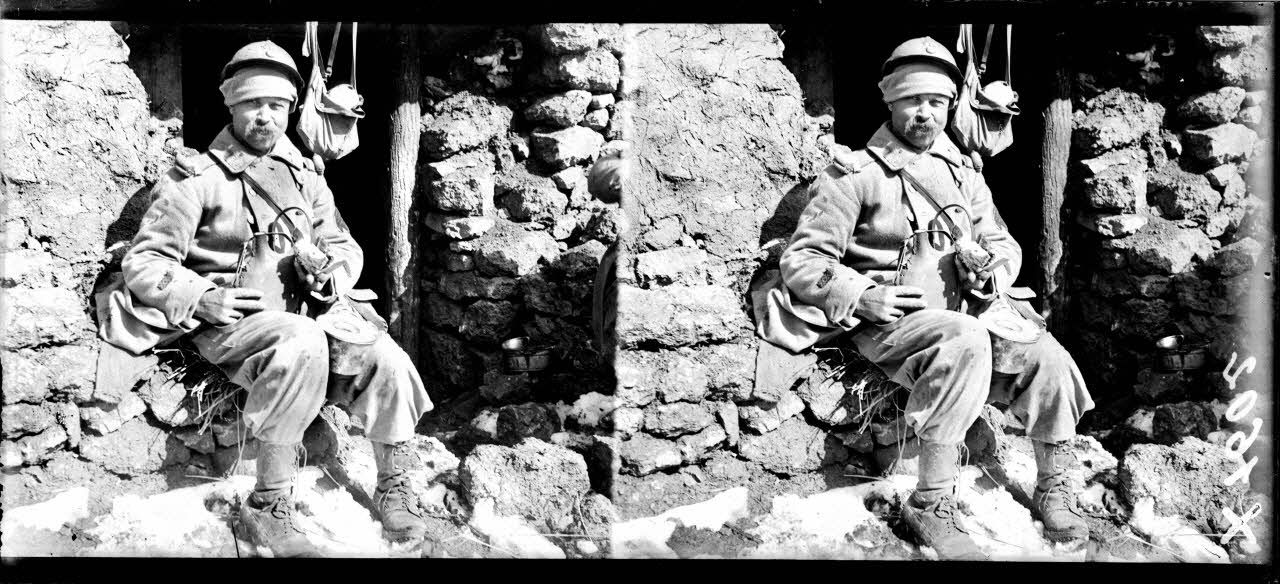 Ravin Saint-Jacques (Meurthe-et-Moselle). Sapeur mangeant sa soupe. [légende d'origine]