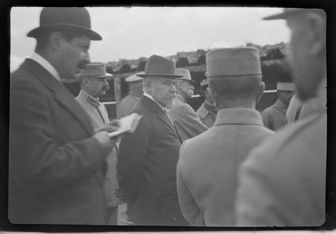 [Raymond Poincaré entouré d'autorités civiles et militaires lors d'une visite à Mailly-le-Camp, s.d.]