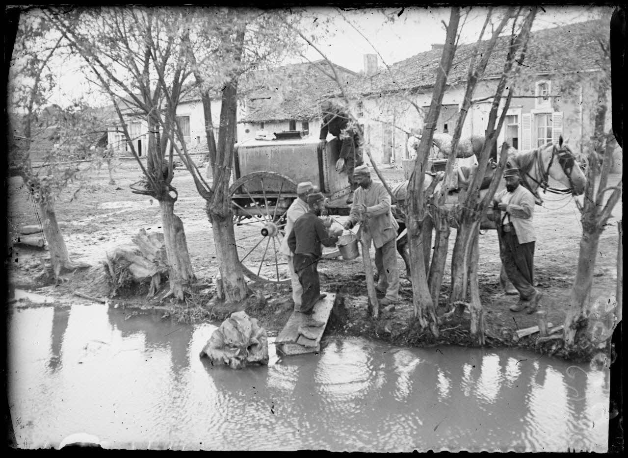 Récourt (Haute-Marne). Remplissage d’une voiture citerne à la rivière (1ère armée). [légende d’origine]