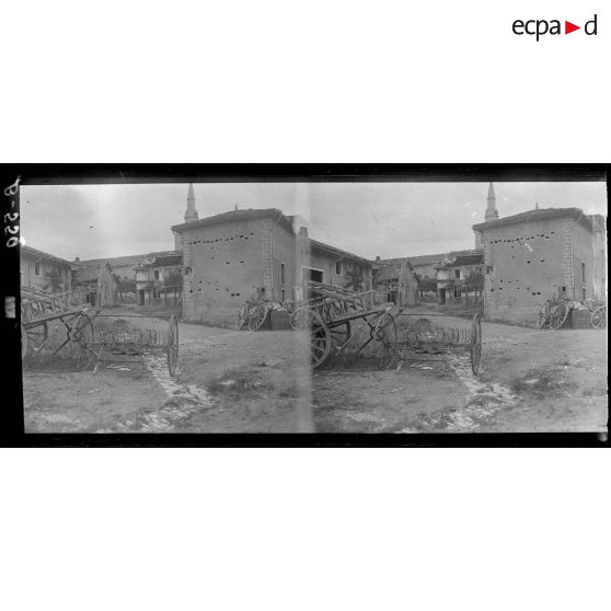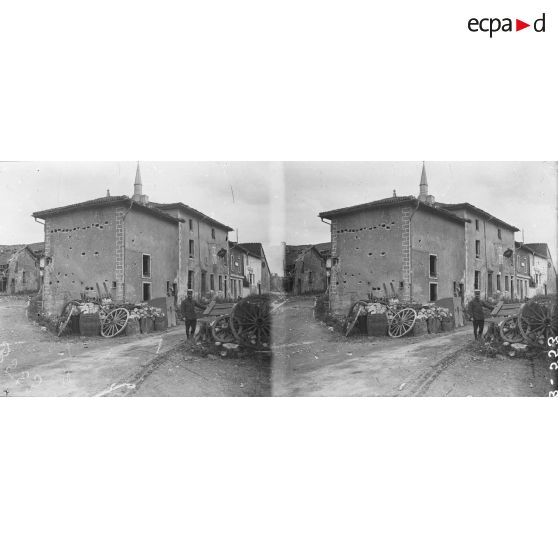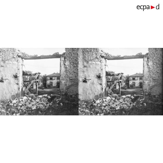 Neuvilly (Meuse). Maisons détruites et maisons avec créneaux .