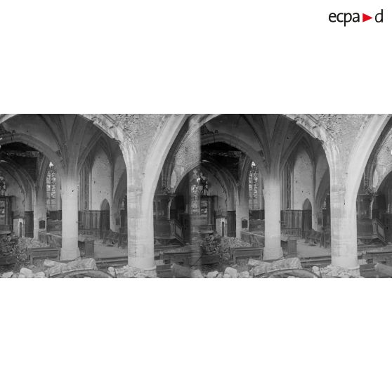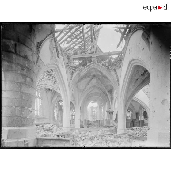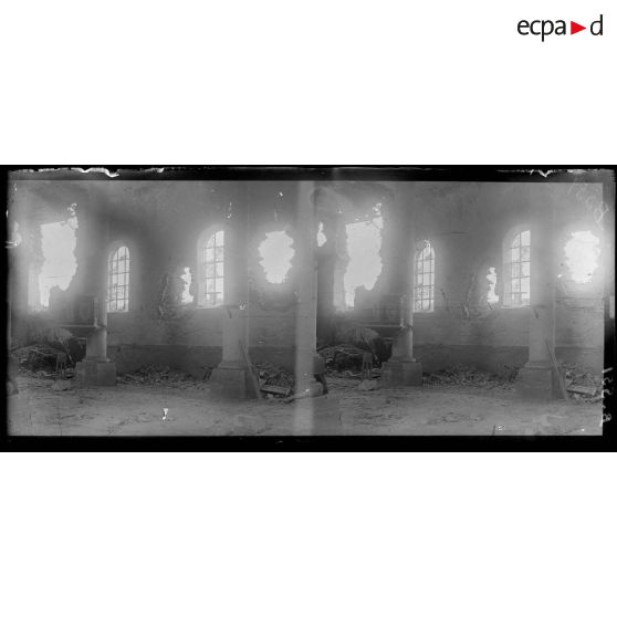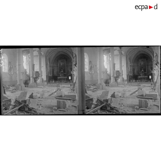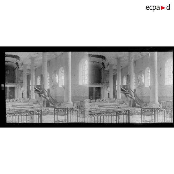 Intérieur de l’église de Beauzée (Meuse) détruite aux combats du 12 septembre 1914.