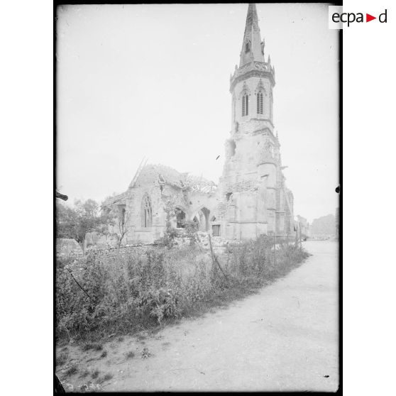Neuvilly (Meuse). Trous d’obus (église). Combats du 7 octobre 1914 .