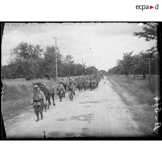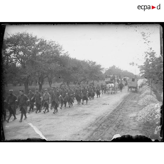 La Grange aux Bois. Brancardiers et ambulanciers se rendant sur le front .