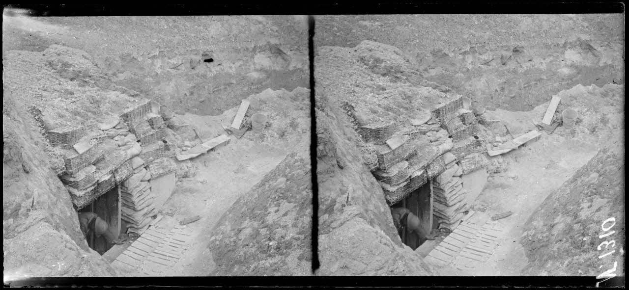 Région du Mont sans Nom (Marne). Entrée d'abri dans une tranchée allemande (20-4-17).