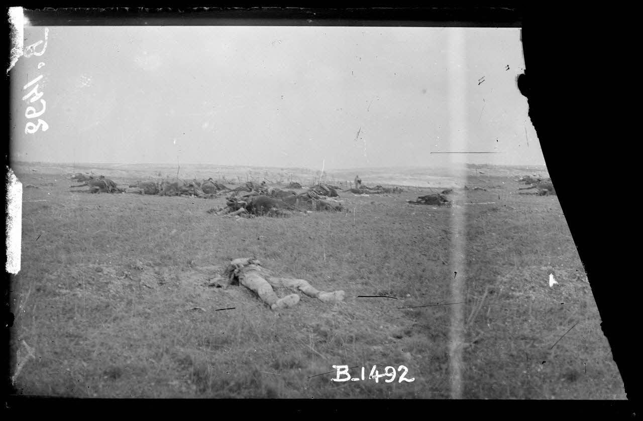 Cadavres allemands dans la tranchée qu'ils occupaient.