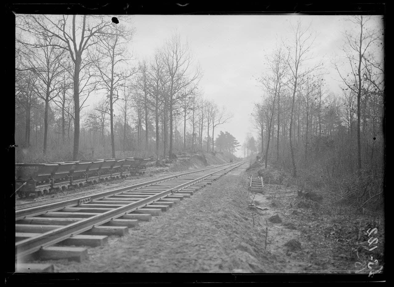 Région de Breuil-sur-Vesles, construction d'une voie ferrée dans le bois des Venteaux.