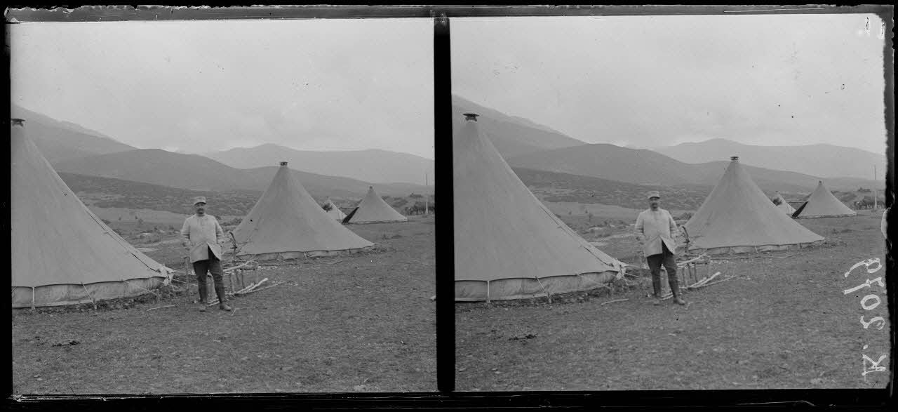 Région de Galatista. Coin de Bivouac. Commandant Pinchon au 1er plan. [légende d'origine]