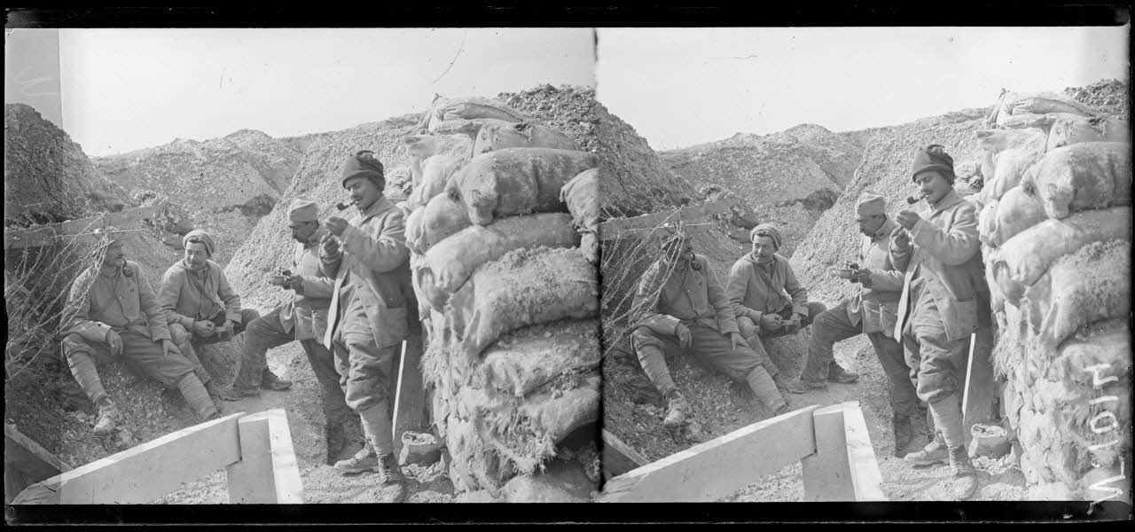 - Dans le secteur de Souain, au PC de l'Etoile, dans le bois de la Chaise, des abris souterrains sont occupés par les soldats. Un guetteur surveille les lignes ennemies.