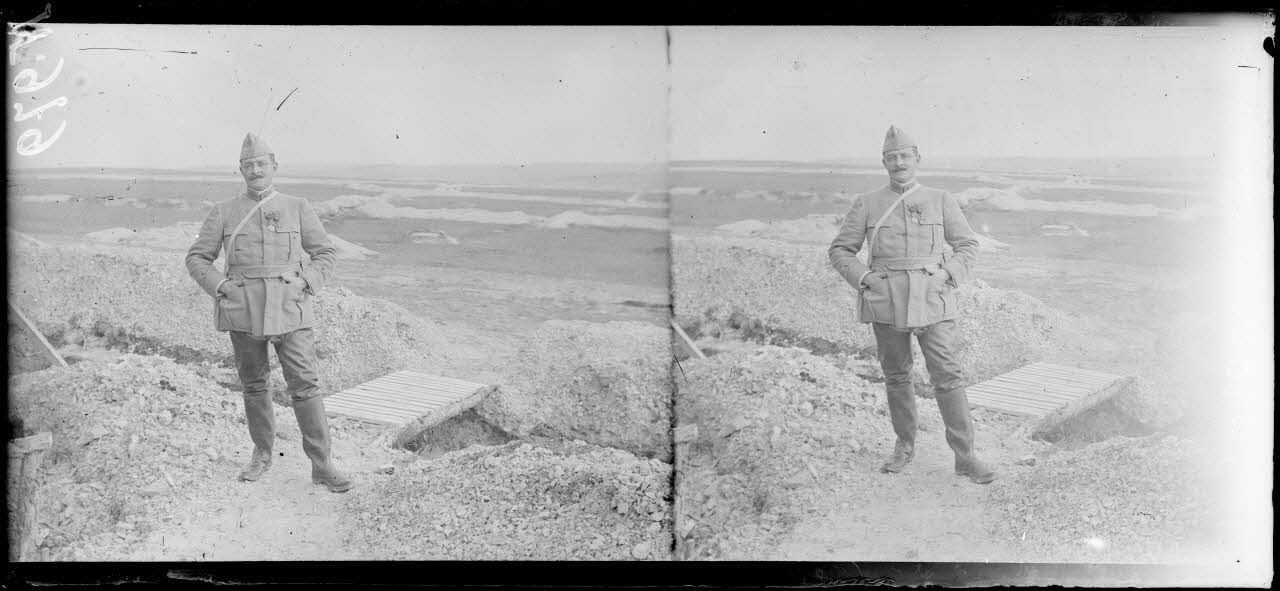 - Dans le secteur de Souain, au PC de l'Etoile, dans le bois de la Chaise, des abris souterrains sont occupés par les soldats. Un guetteur surveille les lignes ennemies.