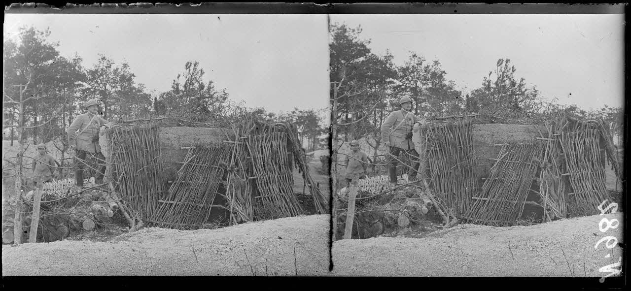 - Dans le secteur de Souain, au PC de l'Etoile, dans le bois de la Chaise, des abris souterrains sont occupés par les soldats. Un guetteur surveille les lignes ennemies.