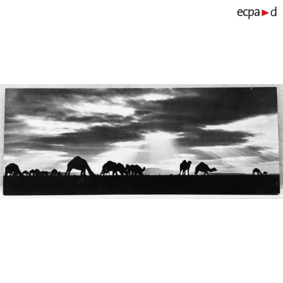 Région de M'Sila. Troupeau de dromadaires.