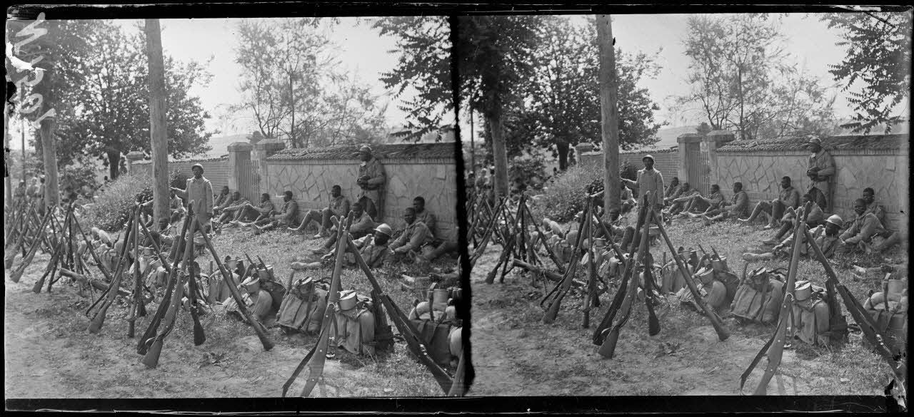 Entraînement des troupes sénégalaises au centre d'instruction de Sompuis, dans la Marne.