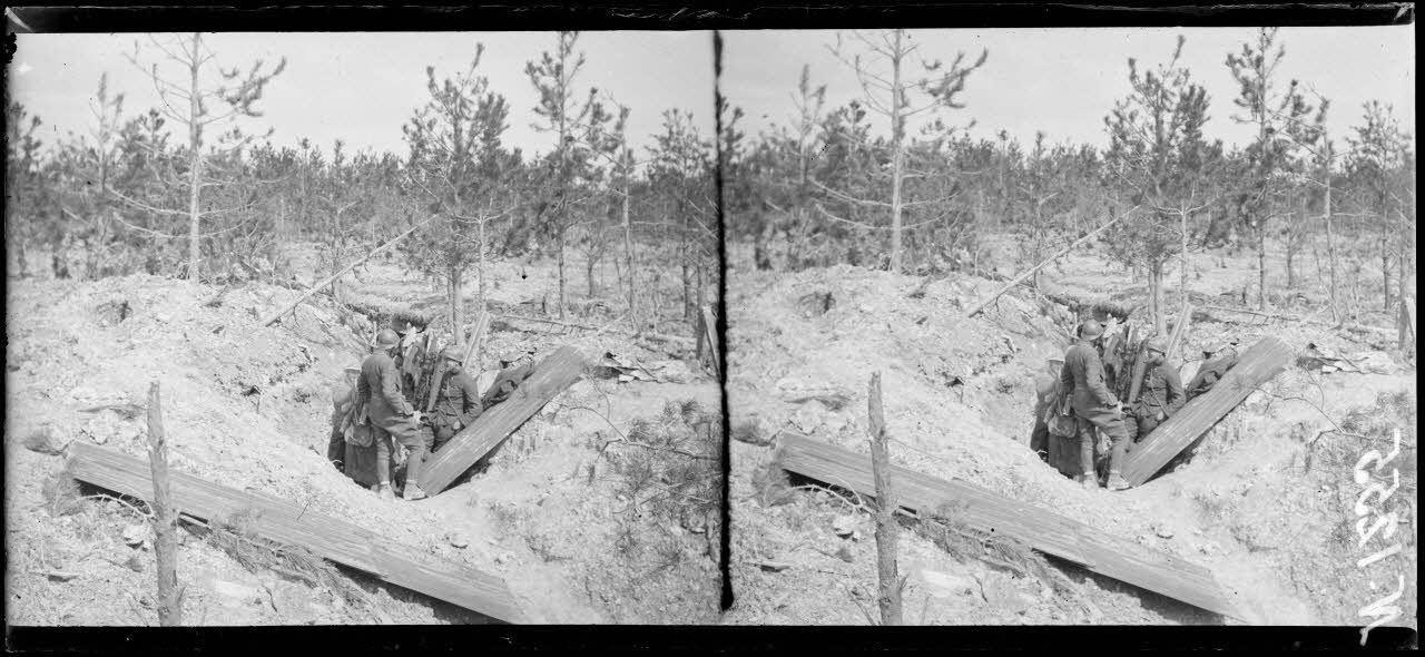 Région du Mont sans Nom (Marne). Entrée d'abri dans une tranchée allemande (20-4-17).