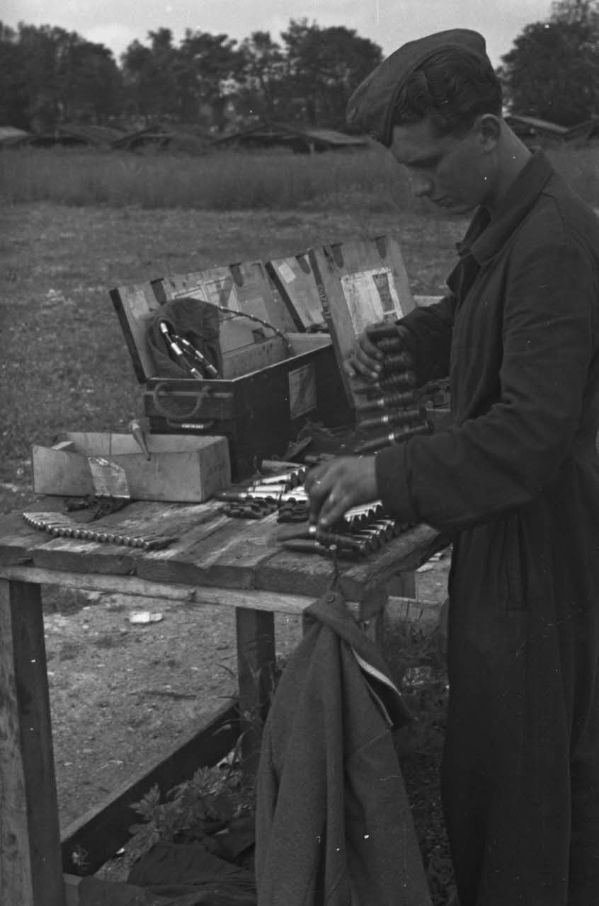 Réglage des armes de bord d'un chasseur Focke-Wulf Fw-190 codé 6 appartenant au Jagdfliegerschule 5.