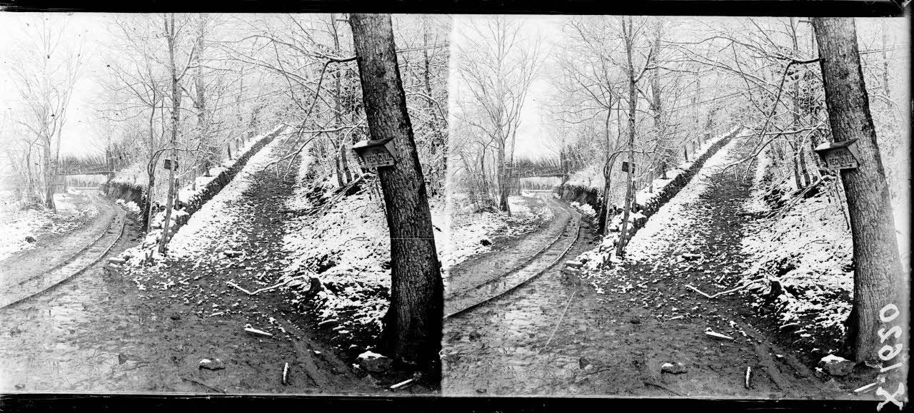 Regnéville (Meurthe-et-Moselle). Le ravin avec voie étroite Decauville. [légende d'origine]