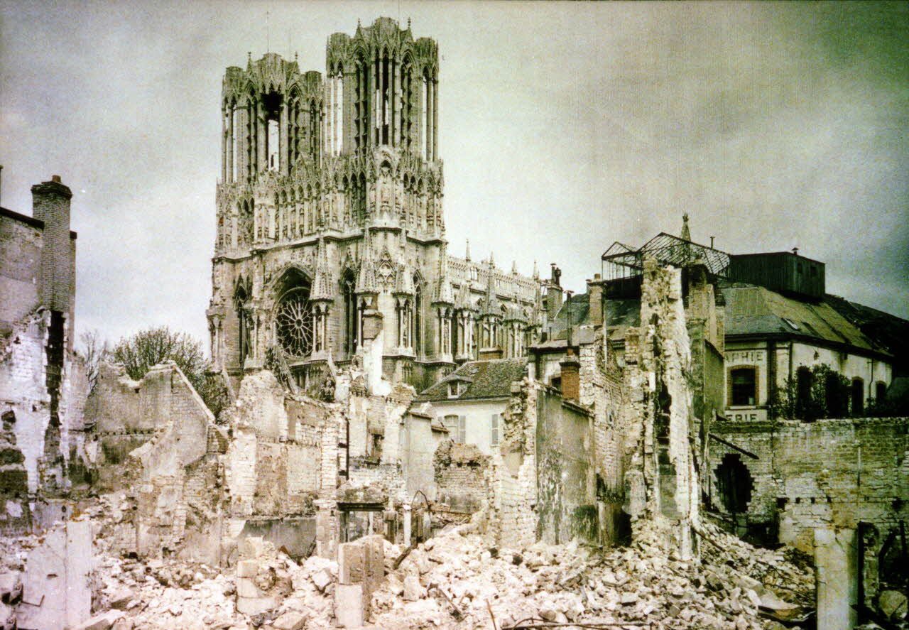 - les ruines et destructions occasionnées par la guerre à Verdun, Reims, Arras ou ailleurs : maisons, églises, cathédrales, lieux symboliques des grandes villes de province en ruines ;