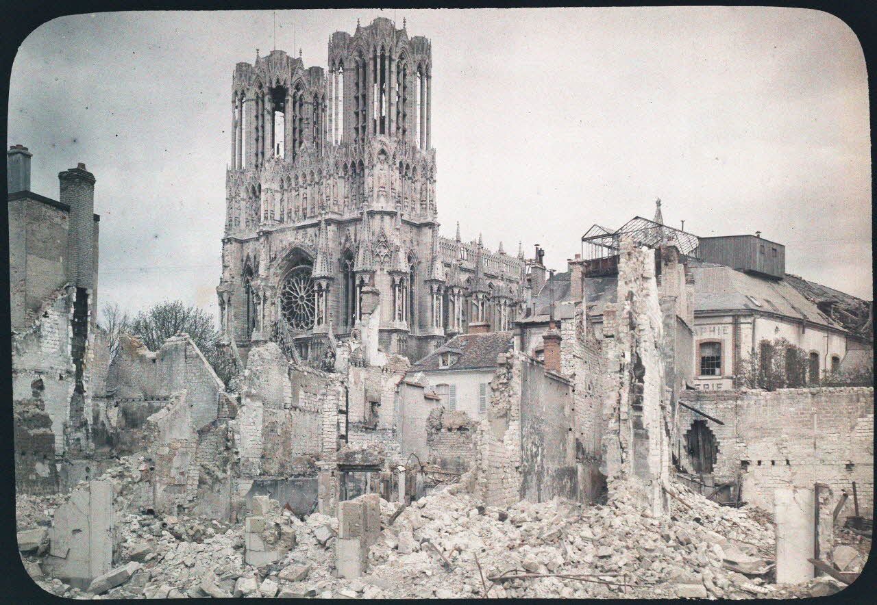 - les ruines et destructions occasionnées par la guerre à Verdun, Reims, Arras ou ailleurs : maisons, églises, cathédrales, lieux symboliques des grandes villes de province en ruines ;