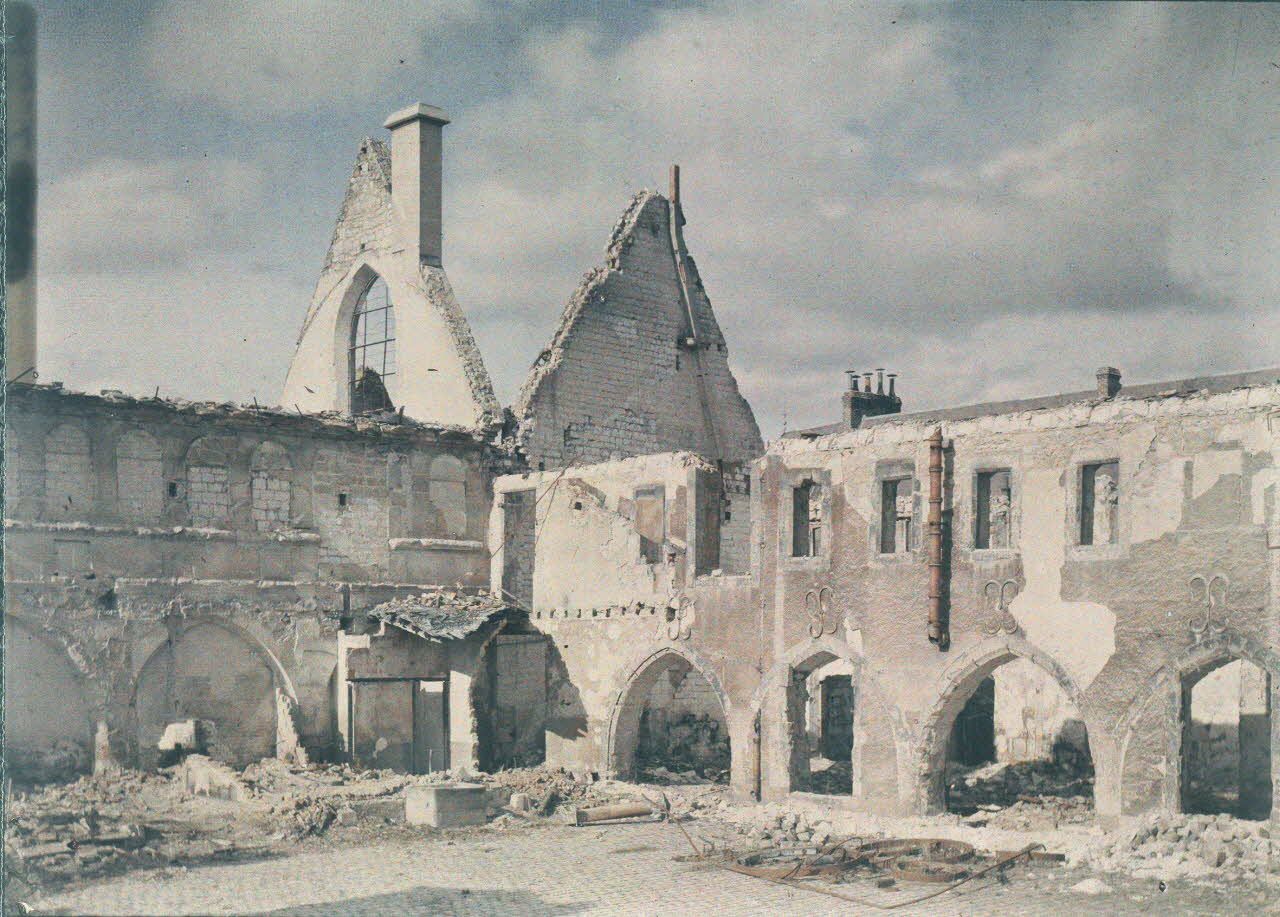 - les ruines et destructions occasionnées par la guerre à Verdun, Reims, Arras ou ailleurs : maisons, églises, cathédrales, lieux symboliques des grandes villes de province en ruines ;