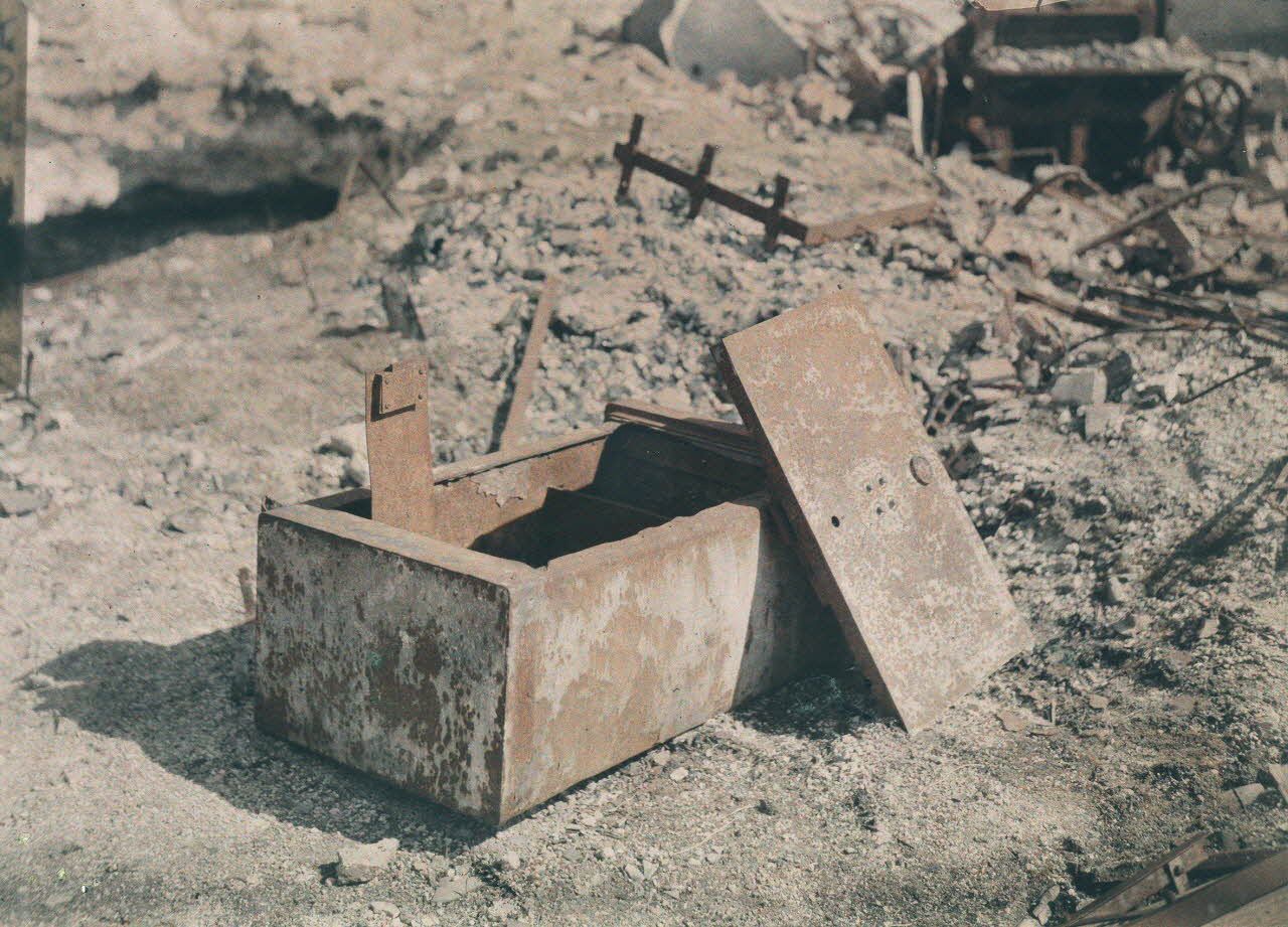 Reims. Coffre-fort au milieu des ruines. [légende d'origine]