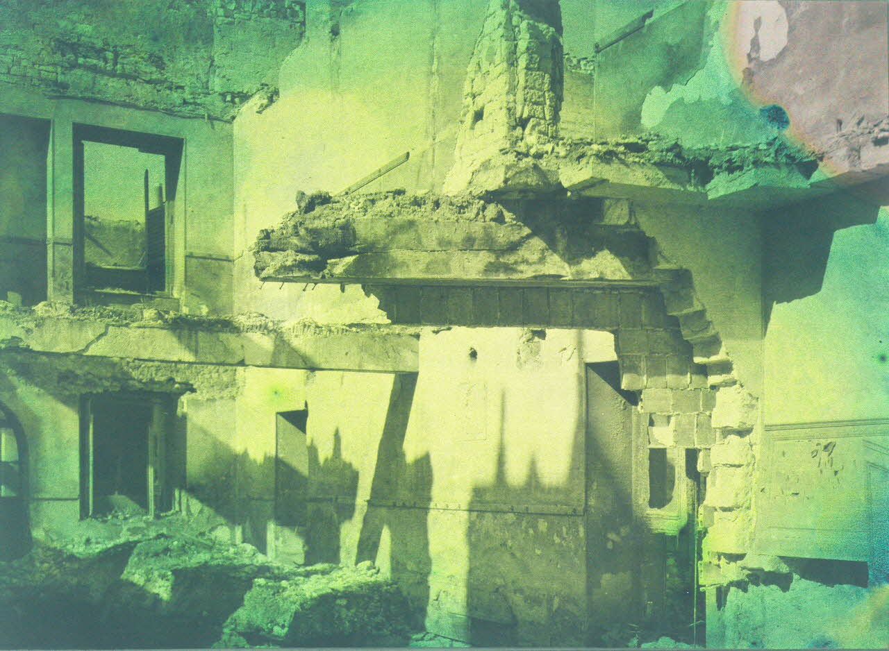 - les ruines et destructions occasionnées par la guerre à Verdun, Reims, Arras ou ailleurs : maisons, églises, cathédrales, lieux symboliques des grandes villes de province en ruines ;